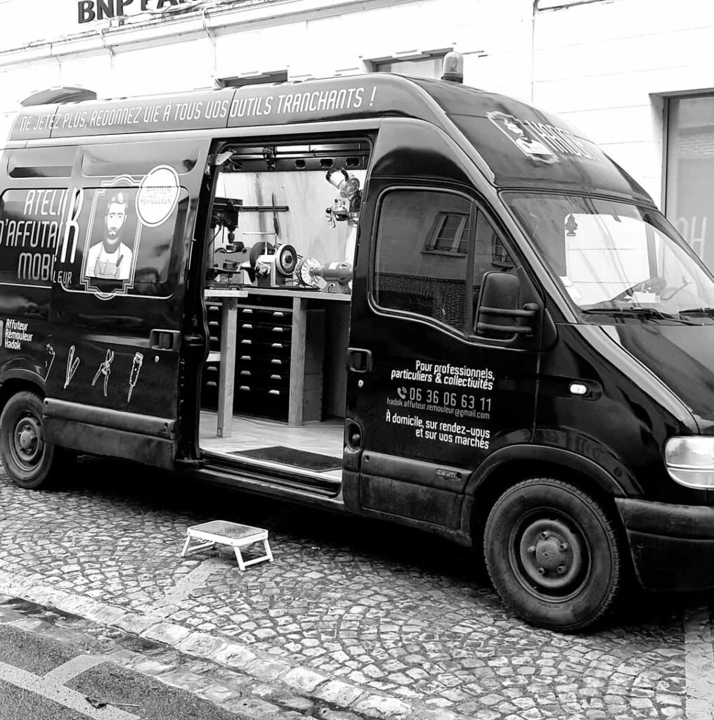 Hadok Affuteur Rémouleur Itinérant, je me déplace directement a domicile sur rendez-vous avec mon atelier mobile pour l’affûtage de vos outils coupants et tranchants.